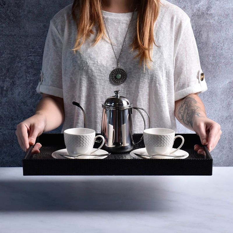 As bandejas em plástico da Kenya te ajudam a complementar a decoração da sua casa, aderindo um toque moderno industrial, a bandeja é perfeita para deixar objetos que são perdidos facilmente, como chaves, moedas e acessórios. Pode ser usada também para servir alimentos ou pode ser colocada em um centro da sala ou na mesa de cabeceira.