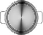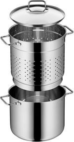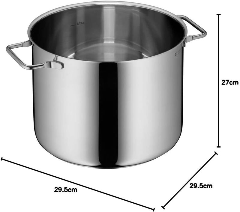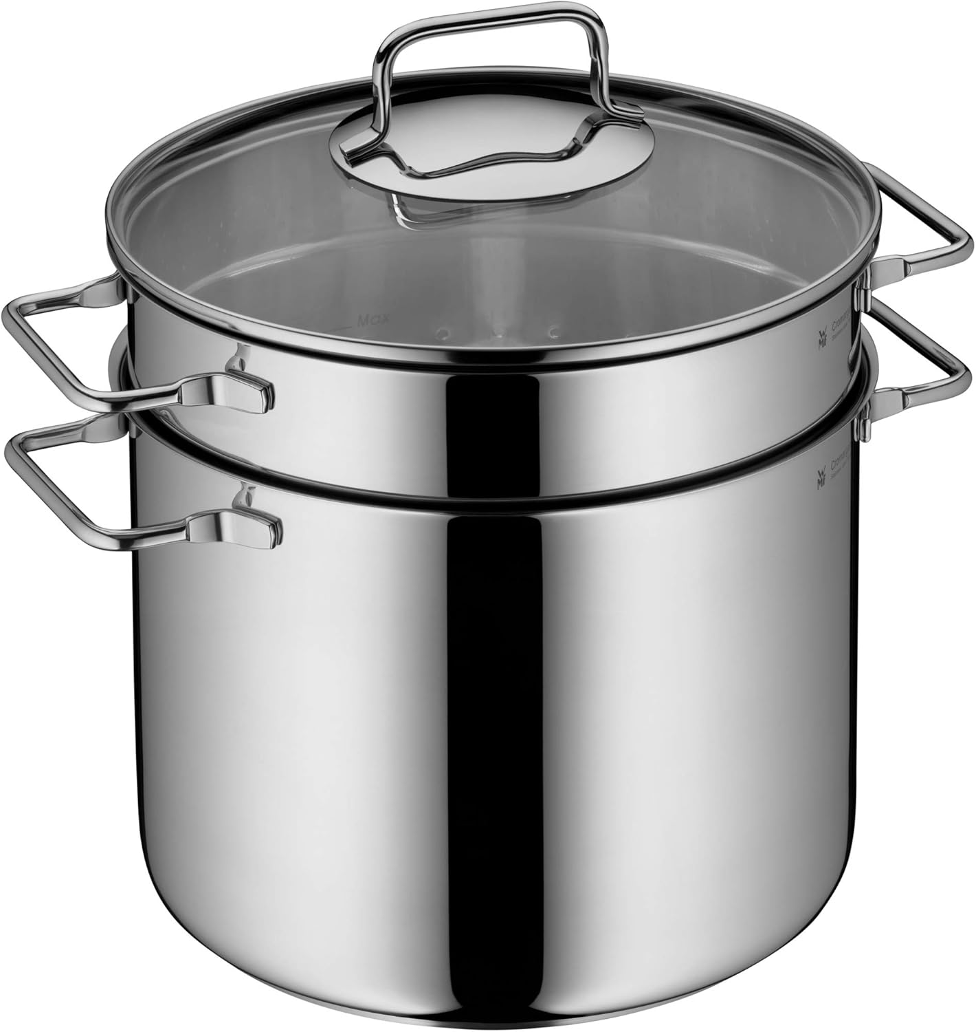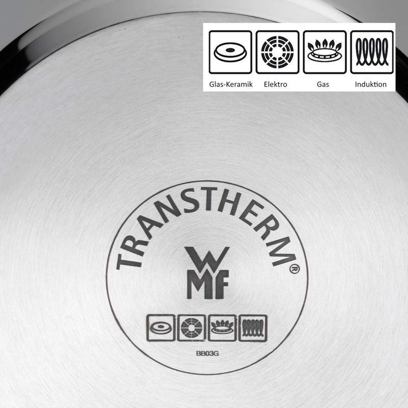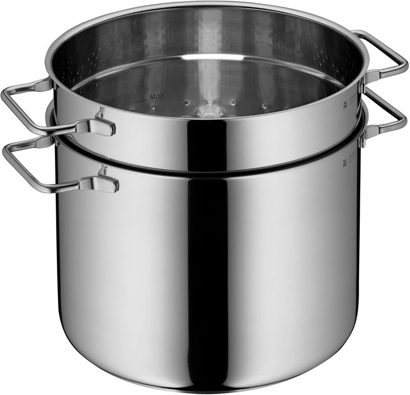 A Espagueteira da WMF foi fabricada em aço inoxidável Cromargan 18/10, é altamente durável, resistente à corrosão e fácil de limpar. Seu fundo TransTherm distribui o calor de forma uniforme e é compatível com todos os tipos de fogão, inclusive indução.